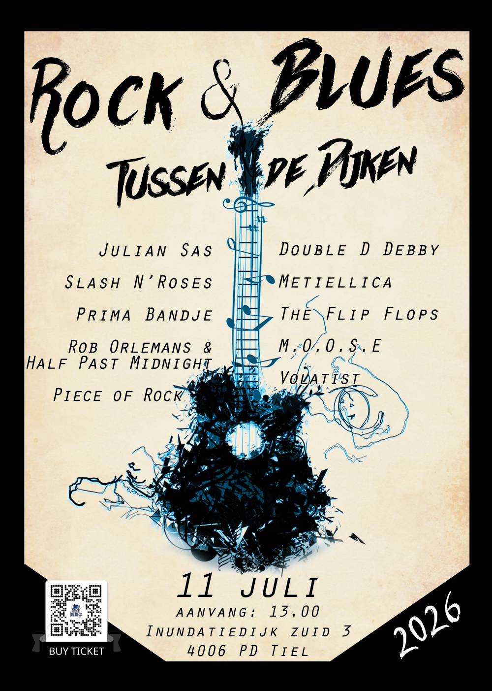 Het festival Rock & Blues Tussen de Dijken 2026 wordt dit jaar voor de 10e maal georganiseerd op het terrein van Minicamping Tussen de Dijken in Tiel.