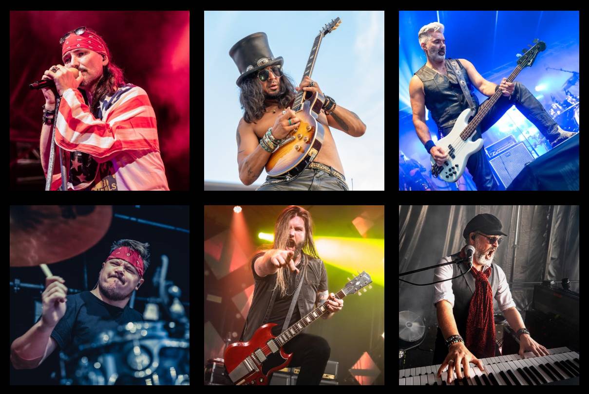 Slash N’ Roses bestaat uit acht ervaren rockers die de iconische hits van Guns N’ Roses met passie en precisie uitvoeren. Met hun authentieke sound, indrukwekkende looks en energieke optredens brengen ze een onvergetelijke show voor elke rockliefhebber.