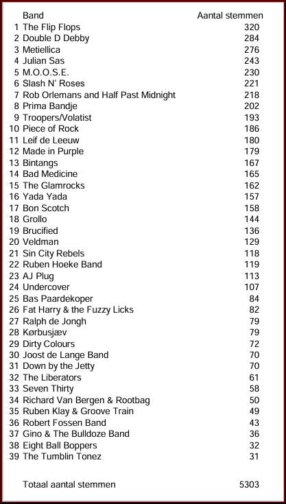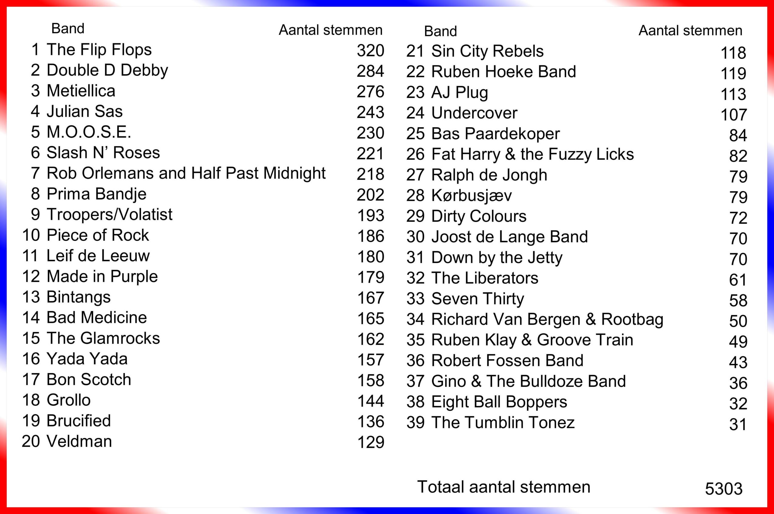 5303 stemmen werden er uitgebracht en het resultaat een prachtige line-up.